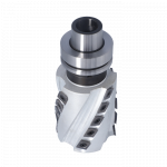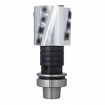 Our Helical Planing cutter is the best choice when it comes to versatility, finish quality end efficiency. The tool performs applications such as joining, planing, rebating, trimming and hogging with ease. This tool can be used in a 3 axis machine but really brings value in 5 axis applications. The planer is a good choice for most shops as it performs well on a variety of materials such as solid wood and composites. Tool life is extended because of the reversible four sided inserts. The tool has spurs on the bottom to provide excellent quality cuts. The tool comes mounted on an HSK 63 Arbor and is right hand rotation.