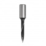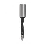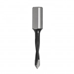 Carbide Tipped V-point Drill Bits are designed to allow a very clean through hole. The drills have a 'V' tip that allows the outside tip to shear the top surface as it cuts allowing a clean surface at the top and bottom of the hole. All drills come equipped with a depth screw on the bottom of the shank and a flat for set screws to lock into. Coating on the fluting of the drill bits reduces the friction between the chips and the inside of the flute the help prevent burning of material. These drills can be used in a CNC machine with a drill adapter that converts the flat shank into a cylindrical shank.